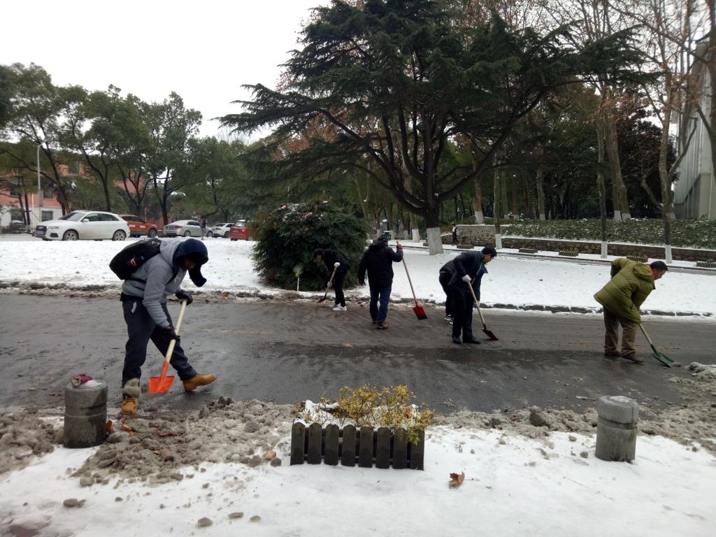 学院杨青松、段钊、刘刚、董庆兴、石义金、李超、程秀峰、蒋可鸣、穆帆共九位老师带领陈紫宇、代沁泉、陈思伟、陈秋阳、米慧馨、李娟、张孜铭、刘磊、邢书红、袁成成、陈果、赵弟发、张浩轩和唐琛共十四位学生参与了本次除雪活动。