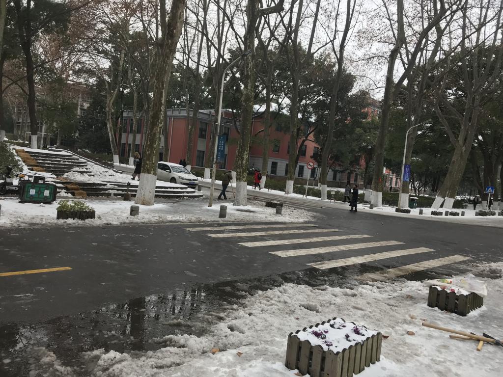 经过3个小时的奋战,下午6点,主干道上九号教学楼路段的积雪基本清除完毕,路面状况、交通通行得到明显改善,确保了师生出行安全。