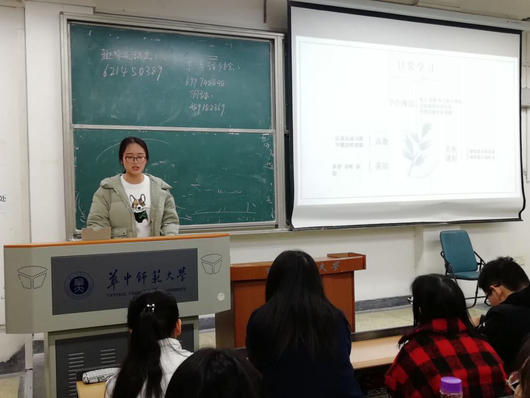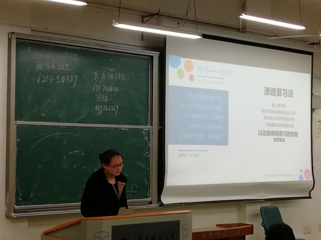信资1701班的梅潇与大家分享了自己日常学习中重要的一个环节——规划,提前写出自己每天、每周、甚至是每月需要做的事情,这样就可以督促自己高效地去完成。至于期末考试,其实并不是那么可怕,考试前的考试周并不是复习的开关,考试前一个月大家就可以有规划地逐渐复习。这样,在考试时才会从容不迫。