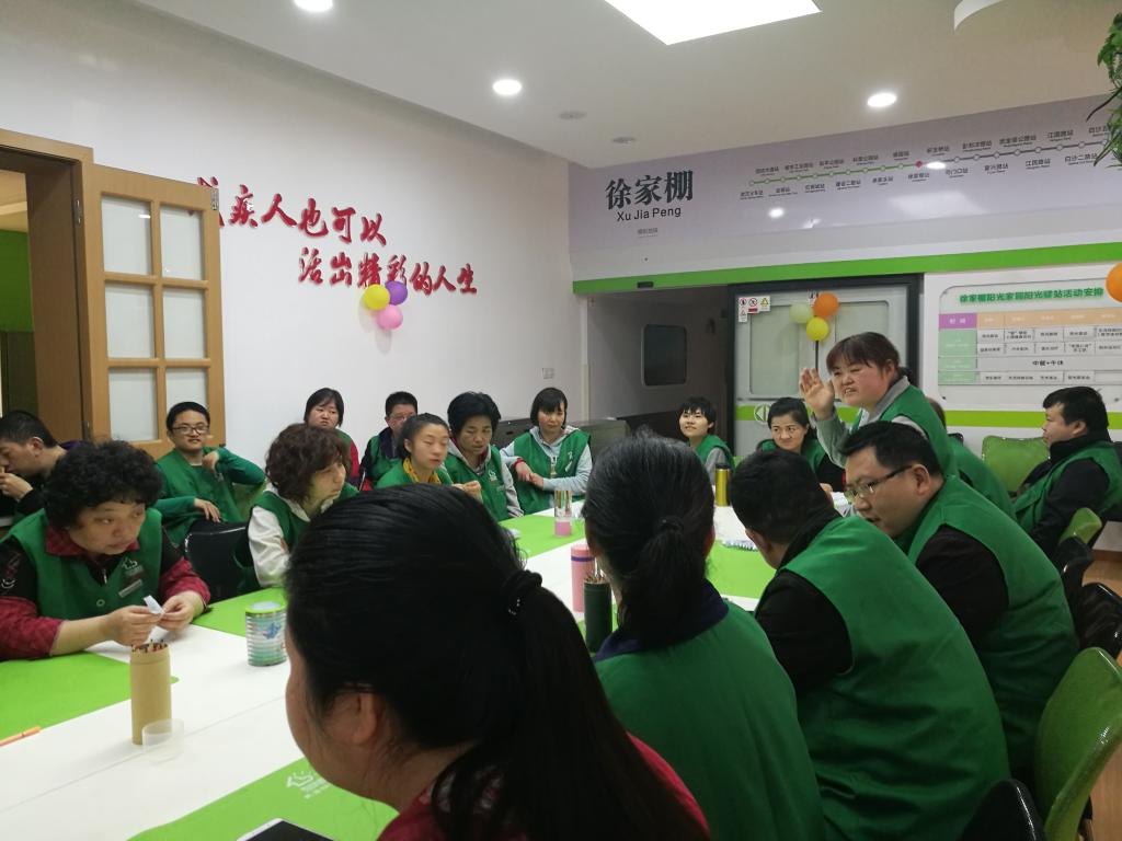 约40分钟车程后,志愿者们抵达了目的地。走进教室发现残疾人朋友正在做广播体操,他们动作熟练,显得格外朝气蓬勃。待他们锻炼身体后,志愿服务正式开始。