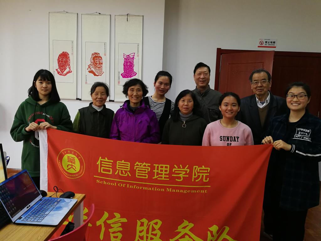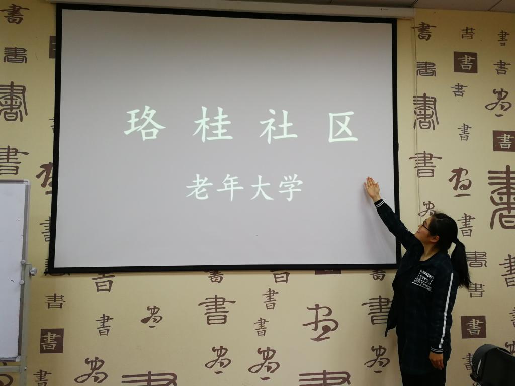 讲授完今天的内容后,一位爷爷拿起了自己的手机,想给志愿者拍张照片。他说自己最近在学习拍照,想把自己的老师拍下来,留作纪念。志愿者董迪迪有点羞涩,却依旧在镜头前微笑着,想把自己最好的一面留给这位老人。老人们称赞董迪迪是个“秀气的女孩子”。