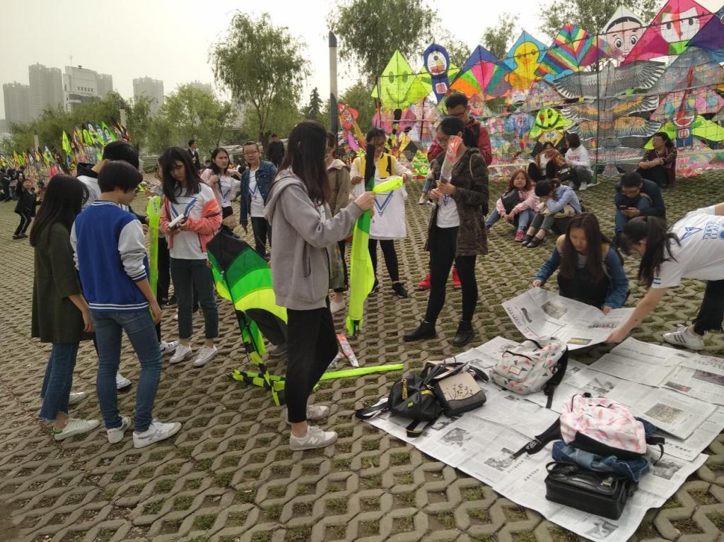 抵达活动场地后,同学们开始帮忙铺报纸,布置活动场地。活动第一阶段是愉快的放风筝阶段:生活委员准备了三架大风筝和三架小风筝,分别用于直接放和DIY展现同学们的创意,感受动手的快乐。一切准备就绪后,同学们分别开始放风筝和在风筝上绘制图画。部分同学由于缺乏经验,尝试多次仍不能让风筝飞起来。但是最后在刘同瑞和陈欢等同学的帮助下,成功放起了风筝。风筝的飞舞,见证了同学们的互帮互助,也展现了同学们的青春与活力。
