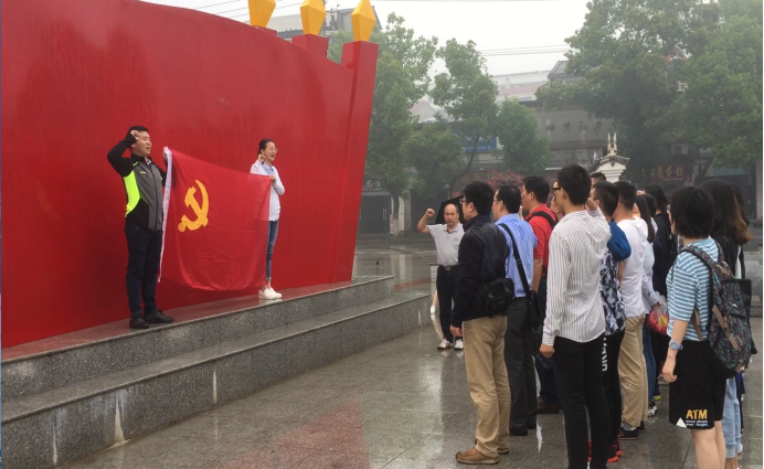 伴着密密的雨丝,在鲜红的党旗的见证下,党员同志们在刘宝卿书记的带领下在红四方面军总指挥部前重温入党誓言,每位党员同志在这革命圣地进行着精神洗礼,永葆革命党性。