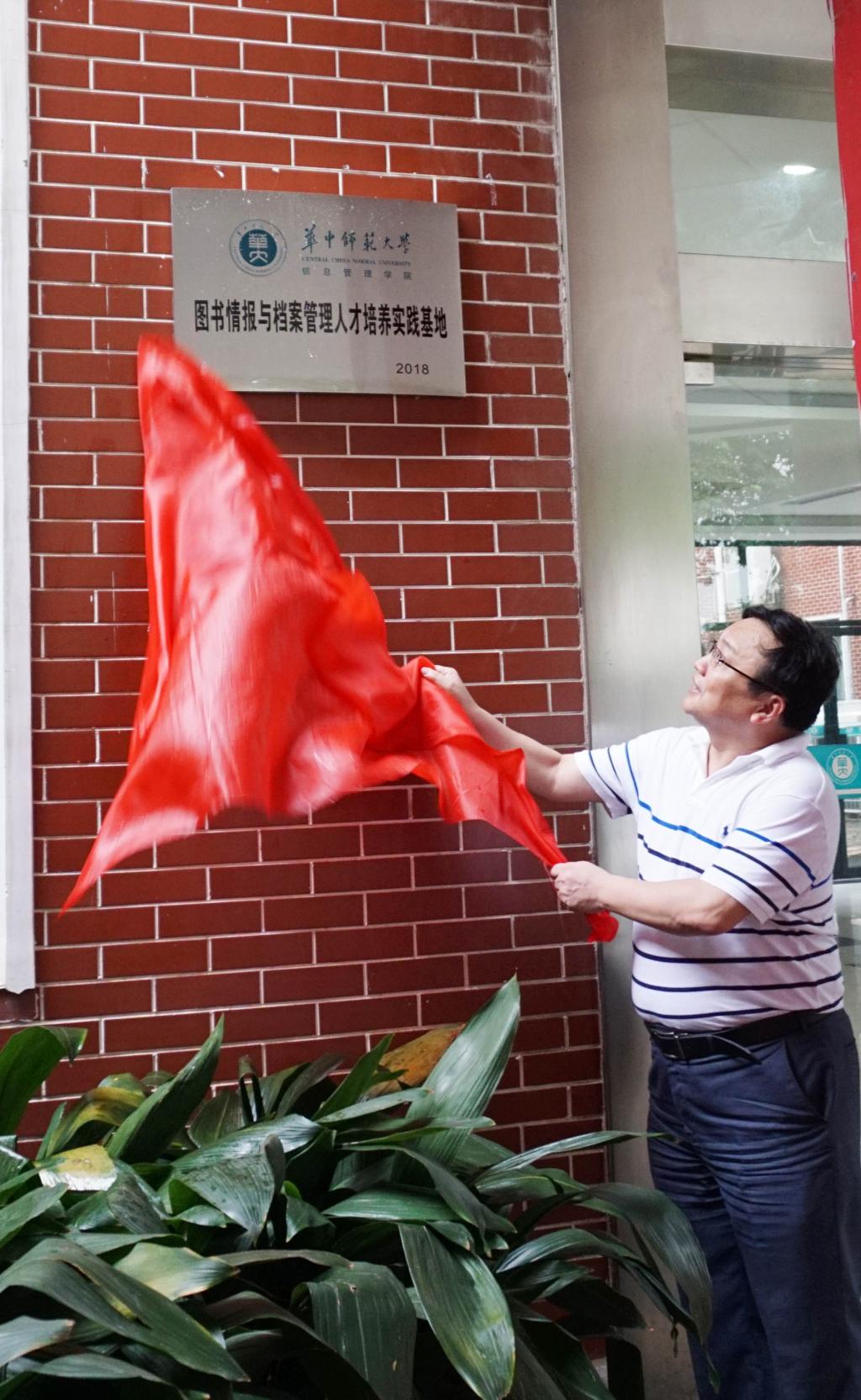 夏立新副校长为“图书情报与档案管理人才培养实践基地”揭牌