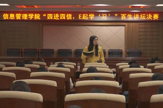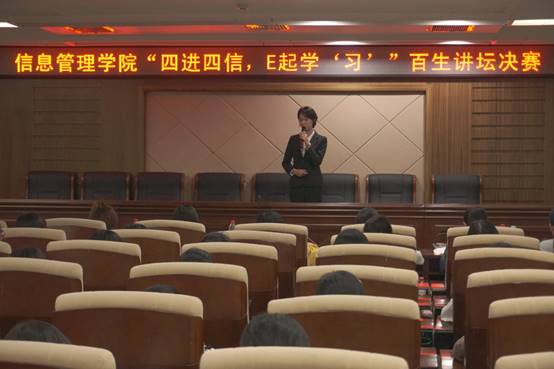 本次 “四进四信,E起学‘习’”演讲比赛充分展现了新时代青年的风采,习总书记对青年的期望也将鼓舞我们不断前进,引领每一个信管人做到“信自己 管天下”,为学院的建设付出一份属于自己的力量,并最终为实现中华民族伟大复兴而奋斗。