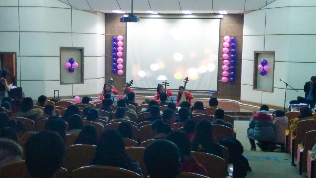 (通讯员 杜丽君)元旦将至,2018年12月26日正逢我们党、军队、国家领袖毛泽东主席诞辰125周年,为了纪念伟大的毛主席,促进各学院之间的交流,帮助同学们融入研究生大家庭,于九号楼一楼报告厅举办了一场题为“精彩,因你我同行”元旦文艺晚会。本活动由信息管理学院、马克思主义学院、文化产业中心三院联合主办,法学院、城市与环境科学学院、物理科学与技术学院承办,我院叶孔森老师、李静老师携其他学院数位老师莅临本次活动,众多研究生同学也观看了本次晚会。