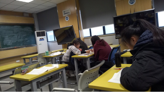 自习过程中,同学们都在根据自己的学习计划,有秩序、有安排地完成自己的学习任务。有的同学在演算纸上计算着高数的典型习题;有的同学在仔仔细细地翻阅《大学英语》教科书;还有的同学基础较好,在完成复习任务后,耐心地为其他同学小声讲解试题。