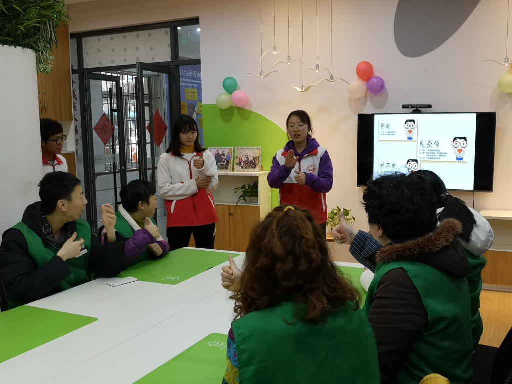 (通讯员:张舒倩)2月28日下午,信息管理学院华信服务队的7名志愿者来到徐家棚阳光家园,开展新一期的志愿服务活动。本次活动主要为残疾人朋友讲解有关泰国的有关知识,教授残疾人朋友手语来丰富残疾人朋友的日常生活。