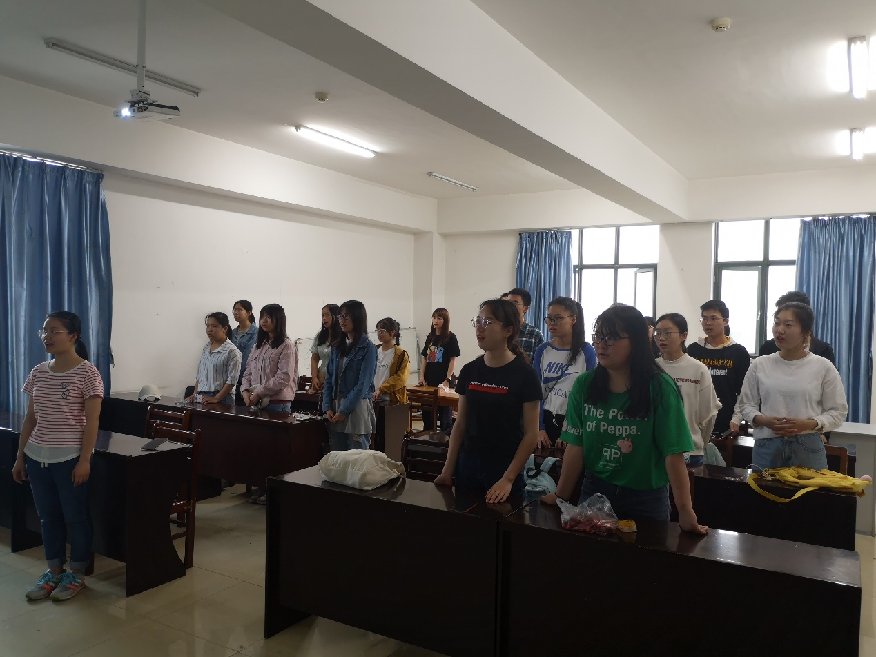 5月16日下午六点,1802班全体成员准时到达华中师范大学九号楼905阅览室,点名完毕好后,活动正式开始。活动第一项是肖丽霞老师讲话。肖老师针对最近学校里的一些热点事件进行了说明:一是网络上有关学校的不实负面消息,我们应该不信谣、不传谣,作为成年人要有自己的判断,不能随波逐流“跟风黑”,给学校带来负面影响。二是最近发生在我们年级的电信诈骗案件。如今的诈骗手段已经非常高明,即使是“眼见”也不一定“为实”,大学生对好友的转账等要求应该三思而后行。肖老师还提到,正值五四运动100周年前后,我们要认真学习贯彻落实五四精神。我们进的是社会主义大学,要弘扬集体主义精神和“爱国、进步、民主、科学”的五四精神。另外,肖老师还结合了时事,提到中美贸易战态度和立场强硬,我们要对国家有信心,对党有信心。将来做社会有用的人,为国家切切实实地做事情,维护我们的国家的尊严与荣誉。