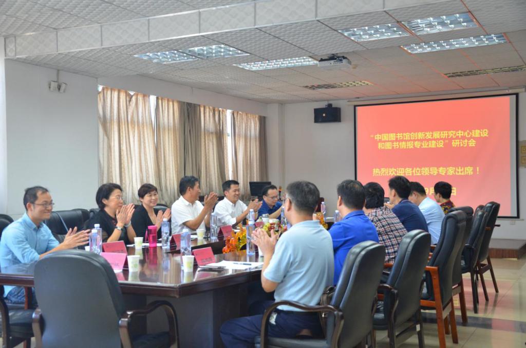 (通讯员 牟奇蕾)9月20日下午,信息管理学院邀请高校图书馆十余位领导专家出席我院关于“中国图书馆创新发展研究中心建设和图书馆情报专业建设”的专题研讨会,会议内容紧扣学院发展规划和行业战略蓝图,专家们各抒己见,共同助力研究中心建设和专业建设。出席会议的专家包括:武汉大学图书馆馆长王新才、华中科技大学图书馆馆长聂鸣、湖北省图书馆副馆长王涛、三峡大学图书馆馆长唐文惠、中南财经政法大学图书馆馆长黄金初、湖北中医药大学图书馆馆长孙玲、湖北经济学院图书馆馆长梅光球、湖北大学图书馆副馆长骆晓曙、中南民族大学图书馆副馆长谢守美和华中师范大学图书馆馆长刘宝卿。信息管理学院院长李玉海主持会议,曹高辉副院长、易明教授及学院众多图书馆专业教师参加了此次会议。