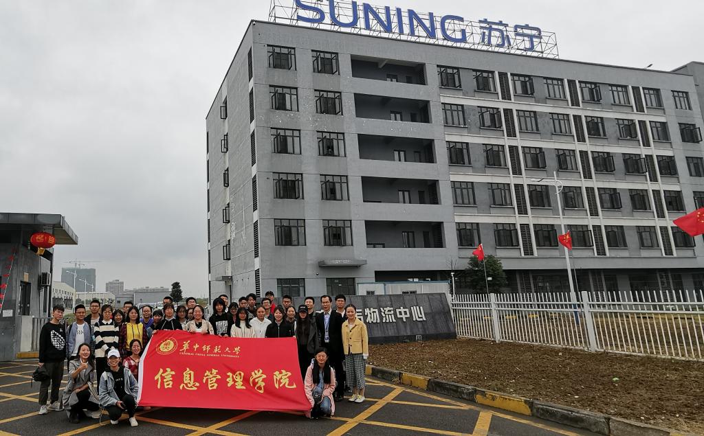 师生于下午2:30首先到达了苏宁易购物流中心。苏宁创办于1990年12月26日,是中国商业企业的领先者,经营商品涵盖传统家电、消费电子、百货、日用品、图书、虚拟产品等综合品类,线下实体门店1600多家,线上苏宁易购位居国内B2C前三。