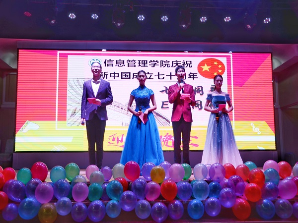(通讯员 石丹 陈万琪 )10月20日晚,由院团委、学生会主办,院文艺部承办的2019级迎新晚会在大学生活动中心五楼隆重举行。院党委副书记王涛、副院长卢新元、研究生辅导员叶孔森、院团委书记、16级辅导员穆帆、18、19级辅导员肖丽霞、17级辅导员姚月娇、1903班班主任王萍、1904班班主任杨小溪、1905班班主任李霞出席本次晚会。身在北京但心系信管的李玉海院长向大家发来贺信,表达对此次晚会的高度重视。