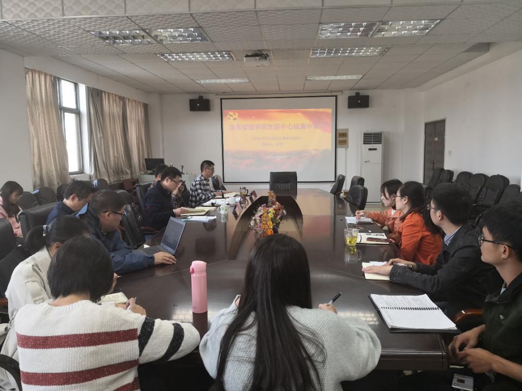 根据校党委的要求和信息管理学院分党委的工作安排,2019年10月18日下午4:30,学院党委中心组成员在九号楼918会议室进行了“不忘初心,牢记使命”主题教育第五次集中“领悟”。本次会议由院分党委委员、工会主席胡潜主持学习并“领悟”,学院中心组成员、各行政办公室教师及部分学生支部书记代表参加了本次学习。