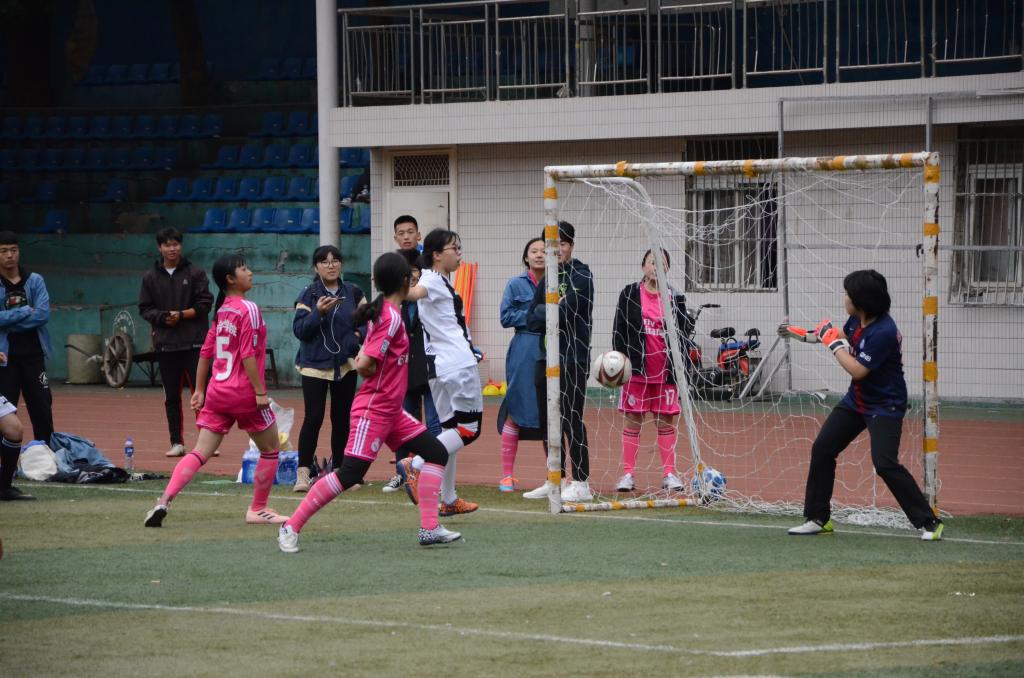 中场休息时,我方再次进行战术讨论。教练向队员们强调不要骄傲,稳住下半场的比赛。下半场开局后,局势变得更加紧张。对方改守为攻,对我方加强攻势,双方球员再次进行激烈角逐。对方球员步步紧逼,对我方球门造成较大威胁。我方后卫王宇数次成功拦截,将球击回。由于激烈的争抢,我方一名前锋在比赛中不慎伤到脚踝,被替换下场。但球员的负伤并未影响球队的士气,反而愈战愈勇,比赛逐渐进入白热化的阶段。18号球员李学涵与五号后卫李慧晴死守我方底线,成功拦下对方多次进攻。我方11球员马仪冲锋在前,向对方的防守球员施压,争夺场上的主动权。随着终场哨声的响起,信管女足拿下了比赛的最终胜利。