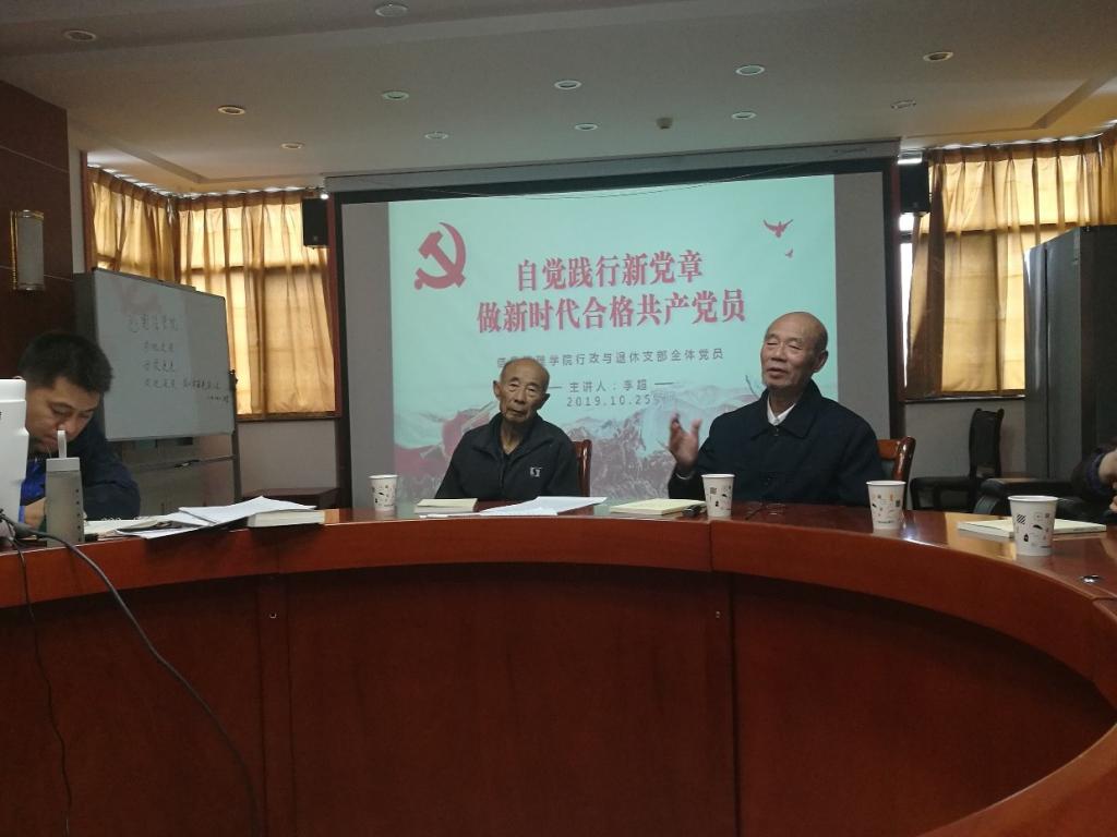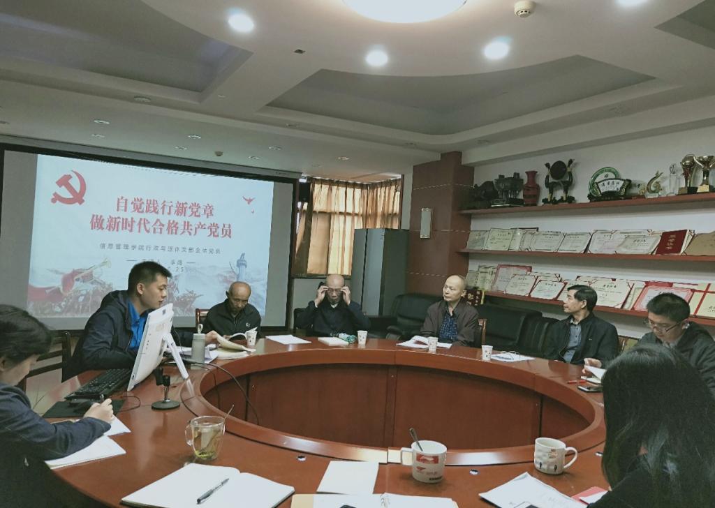 2019年10月25日上午,信息管理学院行政与退休党支部全体党员在九号楼921会议室进行了“不忘初心、牢记使命”主题教育之专题党课活动。本次学习会议由党支部书记李超老师主持并讲授,学院行政与退休支部党员共同参与。