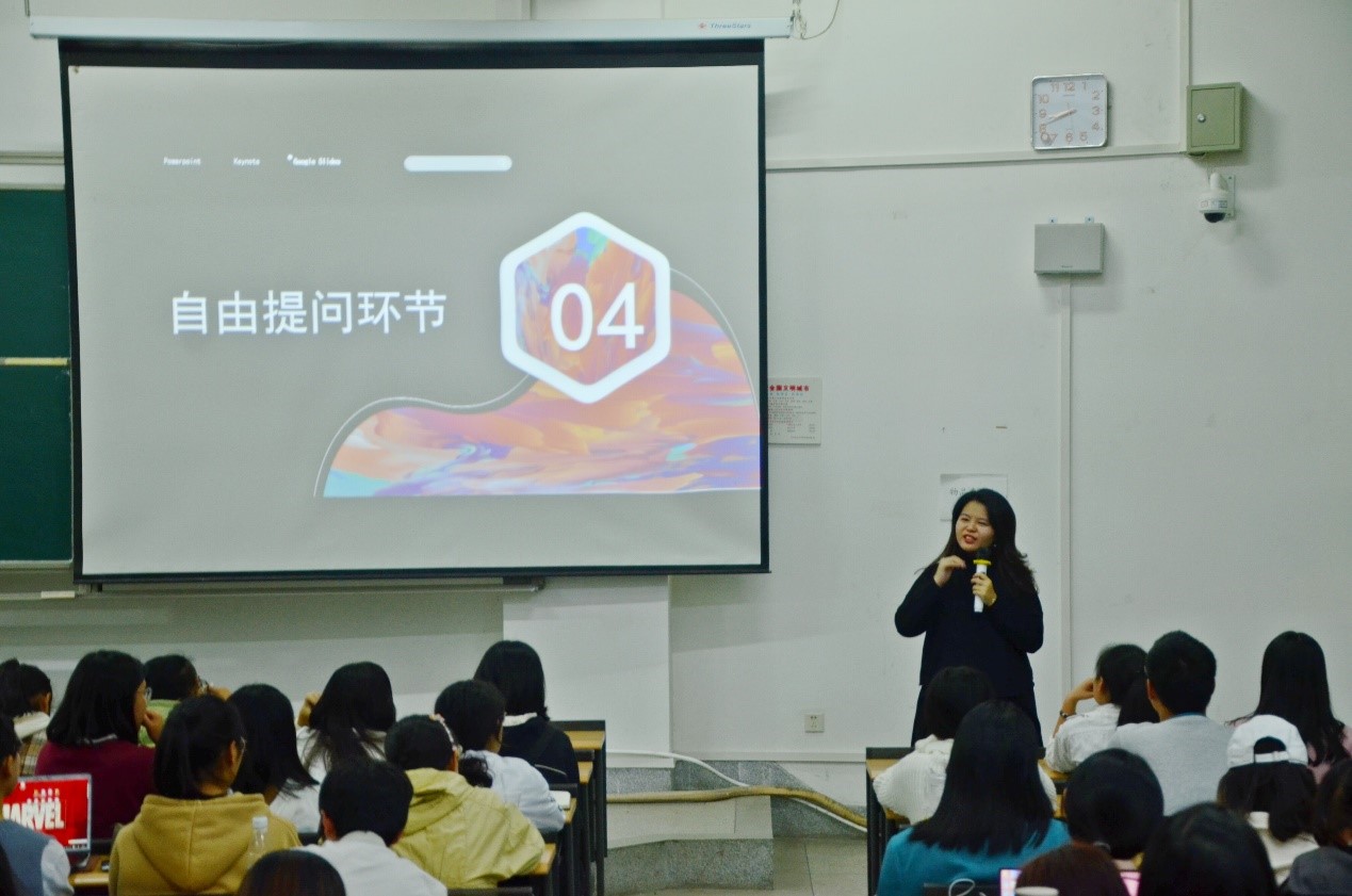 在接下来的宣传培训中,李佳蔚从新媒体运营、平面设计、摄影技巧和自由提问四个部分对学员进行讲解。她指出图文编辑要注重准确性和时效性。同时她强调运营者还要建立特色项目,不定期策划线上活动与用户进行良好互动以达到吸引用户的目的。她还指出作为新媒体的初学者,一定要具备强烈的版权意识。之后,她提出几点有关平面设计和摄影技巧的建议和要求,具有很强的实用性。最后的自由提问环节,李佳蔚认真解答了三位学员的疑问,她的回答得到了在场学员的认可和共鸣,台下掌声阵阵。