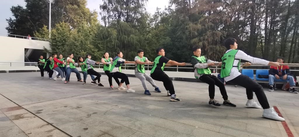 与此同时,在佑铭主馆旁的空地上混合组拔河也在如火如荼的进行,本次混合组拔河比赛的十五名队员由大一大二混合五男十女组成。虽然在这场硬拼力气的比赛中,信管团队女生占据三分之二,但是在文体中心面前完全不输气势。