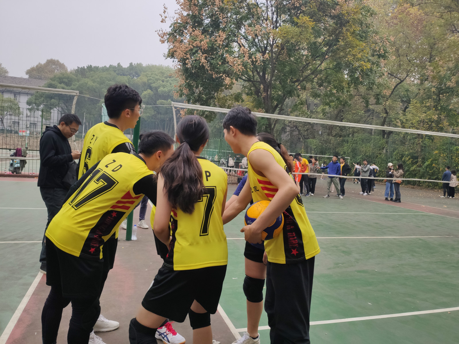 11月16日,我院参赛人员一路过关斩将,从20支队伍中突出重围,连赢四场,进入全校八强。11月17日比赛当天,赛场上人头攒动,大家为这场激烈的八强争夺战均早早入场,翘首以待这场精彩的赛事,叶老师也亲临现场为我院加油助威。我院参赛人员八点到达比赛场地,进行赛前热身和战术的商讨。