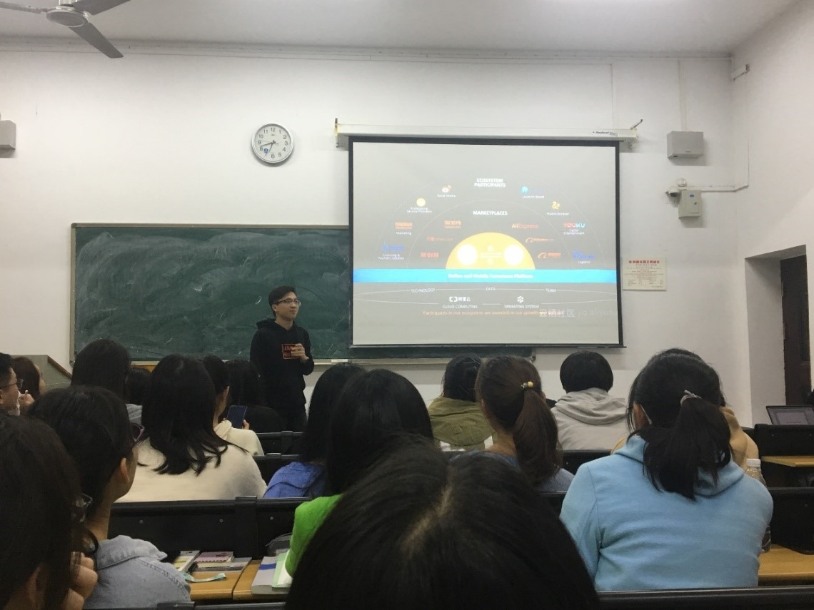第三位分享的是阿里大文娱测试开发工程师田皓,也是信息管理与信息系统专业毕业的直系学长,他分析了自己的逆袭过程,在该专业的四年,他学习了很多,也十分充实。在一片赞叹中,同学们也体会到他一路成长进步所克服的重重困难。或许在不经意间的举动,却能在关键时候助力前行,保持自己的兴趣,能很好的定位人生,是他成功的诀窍。