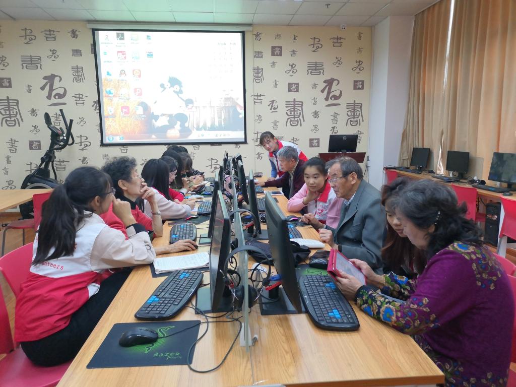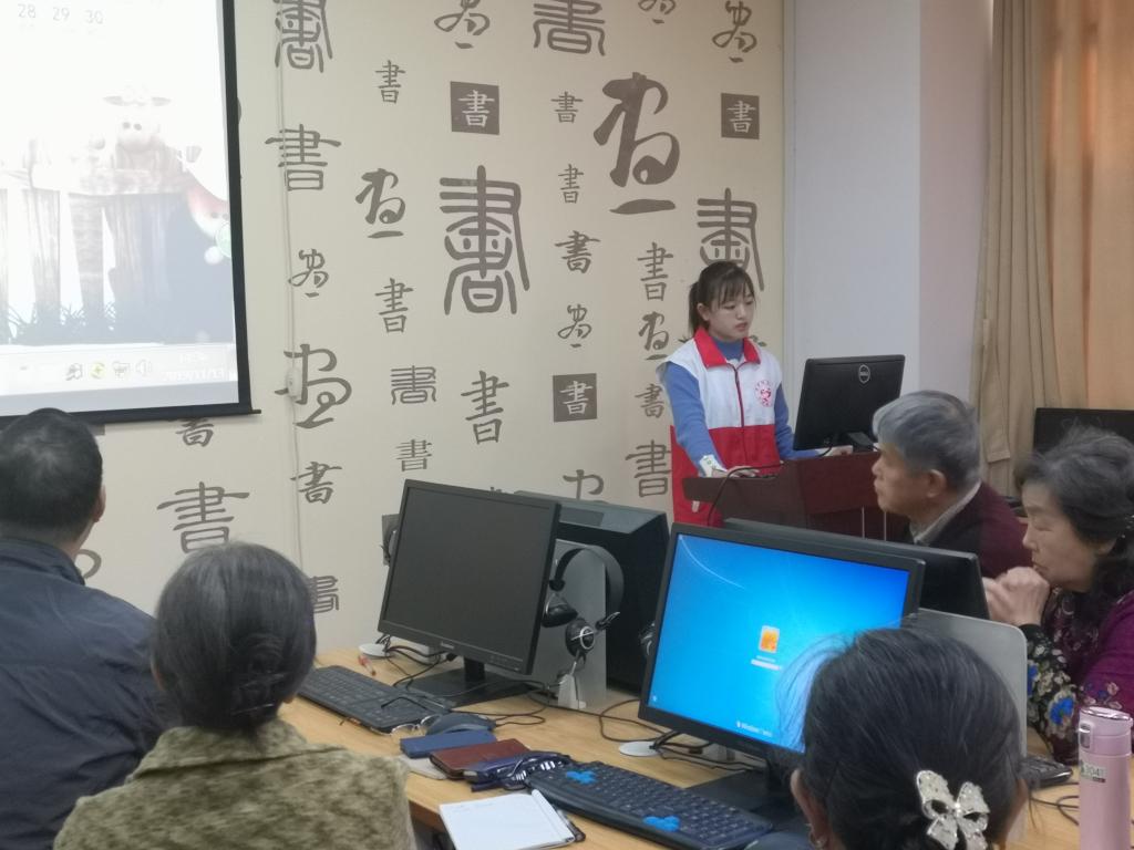 到达珞桂社区老年大学之后,由志愿者张艳惠首先为老人们进行ppt讲解,内容详尽,讲解细致,受到了老人们的赞赏。集体讲解结束后,志愿者们开始了一对一的教学与辅导,在此环节中,老人们可以向志愿者们提问,提问内容自由,但多为老人们在生活中遇到的在使用互联网的过程中所遇到的问题。
