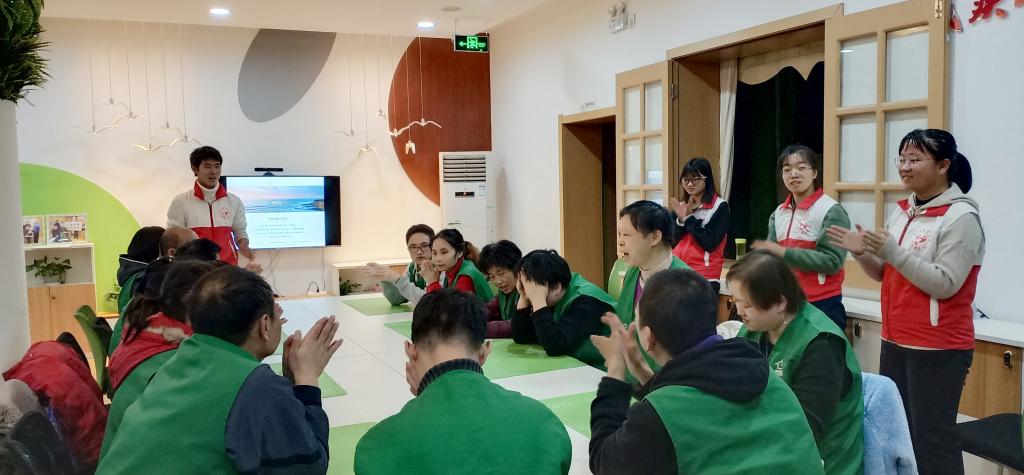 志愿者们来到阳光家园时,残疾人朋友们正在为活动做准备。活动开始,先由志愿者郭明丽和陈万琪向残疾人朋友们介绍美国总统林肯的生平事迹及其所宣扬的平等精神。接着,便到了大家最期待的游戏环节了。这个游戏是“拍七”,即当自己报到七的倍数或含七的数字时就要拍手,做错了就要表演节目。其中的一位残疾人朋友对游戏规则十分清楚,因此她几乎全程都在帮志愿者们指导和纠正其他的小伙伴们。一会儿对这个说:“你要拍手”,一会儿又纠正那个道:“不是,你这个不要拍”。结果到后来数字渐渐变大时,她也犯了错,被志愿者们提醒道:“91也是7的倍数啊”。于是,她只好站起来唱了首歌。残疾人朋友们做错了动作之后,有的模仿了蝴蝶飞舞的动作,有的背了首诗,有的就像那位朋友一样唱了首歌,最后还带动了全体残疾人朋友们一起合唱,整体气氛非常欢乐。