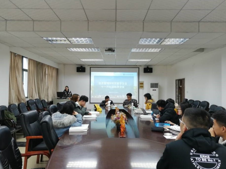 (通讯员:郭宇凡 徐琳琳)11月26日中午,信息管理学院团委学生会十一月社团联席会议在9号楼918会议室顺利召开。信息管理学院团委书记、16级辅导员穆帆、信息管理学院团委副书记谭长芝、学生社团指导中心活动管理部部长李淼、笛箫协会副会长鄢思凡、阮艺协会会长陈红、信息素养协会副会长钟正、电子商务协会副会长王贞俨、二胡协会副会长马婉钰出席本次会议。信息管理学院社团联合部全体成员参与本次会议。会议由社团联合部部长倪嘉蔚主持。