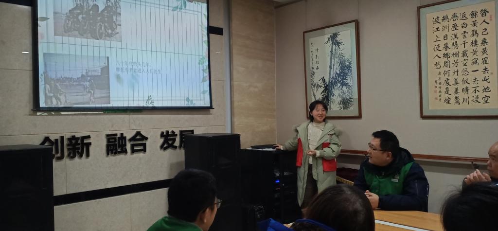 交通规则讲解完,志愿者石丹和廖瑜璐又对中国的交通发展史进行了讲解,并联系当下的实际情况让残疾人朋友们感受到了现代交通的快速发展。最后,是志愿者郭彤为残疾人朋友们准备的英雄机长刘传健的事迹。志愿者通过一段《中国机长》的电影预告,向残疾人朋友们展现了飞机失事的惊险场面,然后又用刘传健的访谈向残疾人朋友们传达了这位英雄人物的执着与担当精神。
