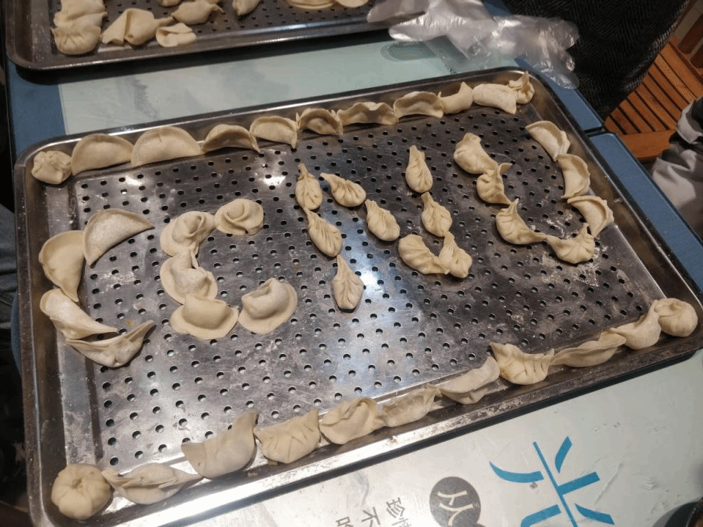 此次活动吸引了近八十名师生。活动前,桂香园食堂的师傅们早早就为师生们准备好了饺子皮、饺子馅、蘸料,各种工具一应俱全。比赛还未开始,大家就迫不及待地动手准备了。在包饺子过程中充斥着大家的欢声笑语,这使得节日气氛更加浓烈。不到一个小时,所有的饺子馅就都包完了,铁盘了摆满了各种形状的饺子,甚至还有手巧的同学包出了花朵的形状。