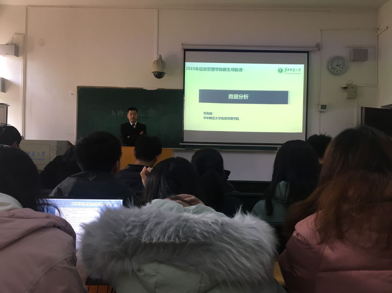 (通讯员:杜欣洁 褚予汐)12月27日下午2:00, 2019级信息管理学院信息管理与信息系统专业本科生新生研讨课于七号楼7207教室举行。本次新生研讨课由科研副院长曹高辉主讲,他为同学们介绍数据分析相关知识。