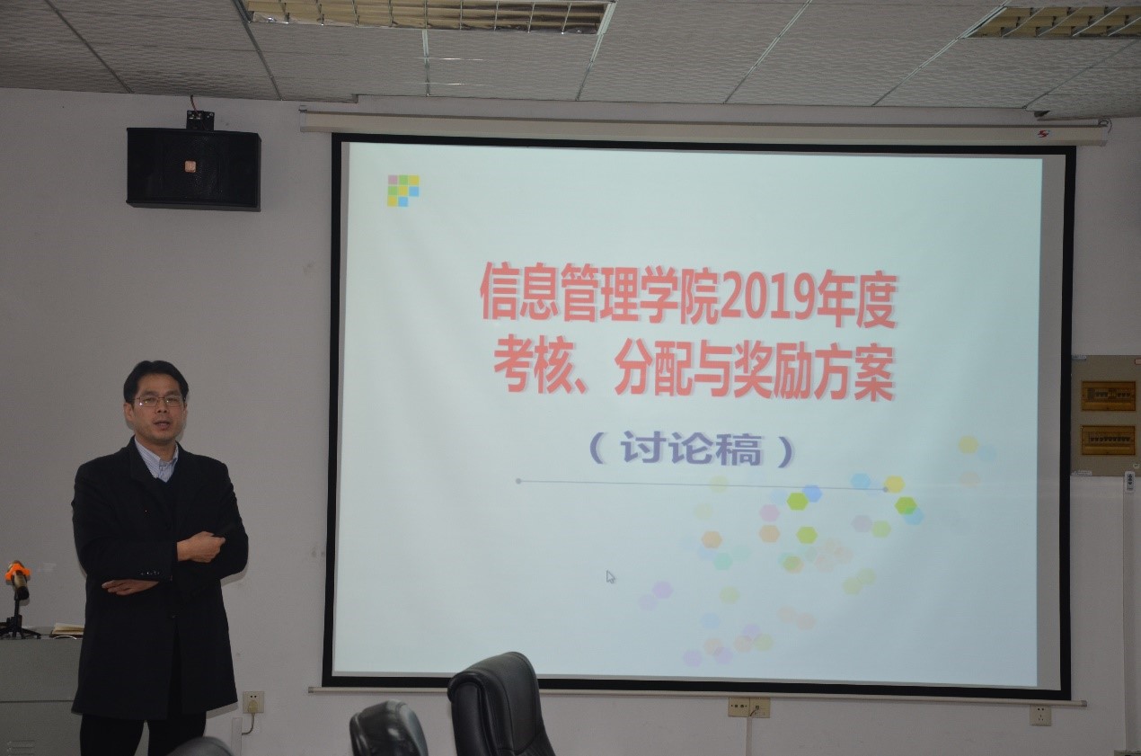 教学院长卢新元向大会提交了《信息管理学院考核、分配与奖励(讨论稿)》,从学院总体分配方案,学院可分配性收入来源、具体考核办法和院务院内活动奖励等方法,做了具体详细说明。之后全院教职工围绕两份工作报告和《信息管理学院考核、分配与奖励(讨论稿)》等问题,分4个小组进行集中讨论。分组讨论一直持续到下午2点半,之后全院教职工再次集中,由各小组分别作总结发言,学院领导一一回复。