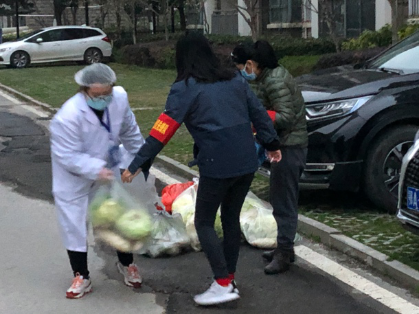在洪山区幸福社区的安排部署下,刘井伟主要负责南湖景苑红馆小区的上门排查、分发政府爱心菜、团购食品药品等工作。两天内,刘井伟对南湖景苑中的4栋住户总计280户居民展开了逐一上门排查,张贴二维码,摸清居住情况并做登记。经过仔细的排查,刘井伟重新核实了3户确诊病例的就医情况和目前的病情状况,并排查出2户独居老人需要协助使用微信团购蔬菜,1户癌症患者需要安排配送特殊药品的需求。通过社区地毯式的排查,社区志愿者们为社区居民构筑了一道坚实的疫情防线。