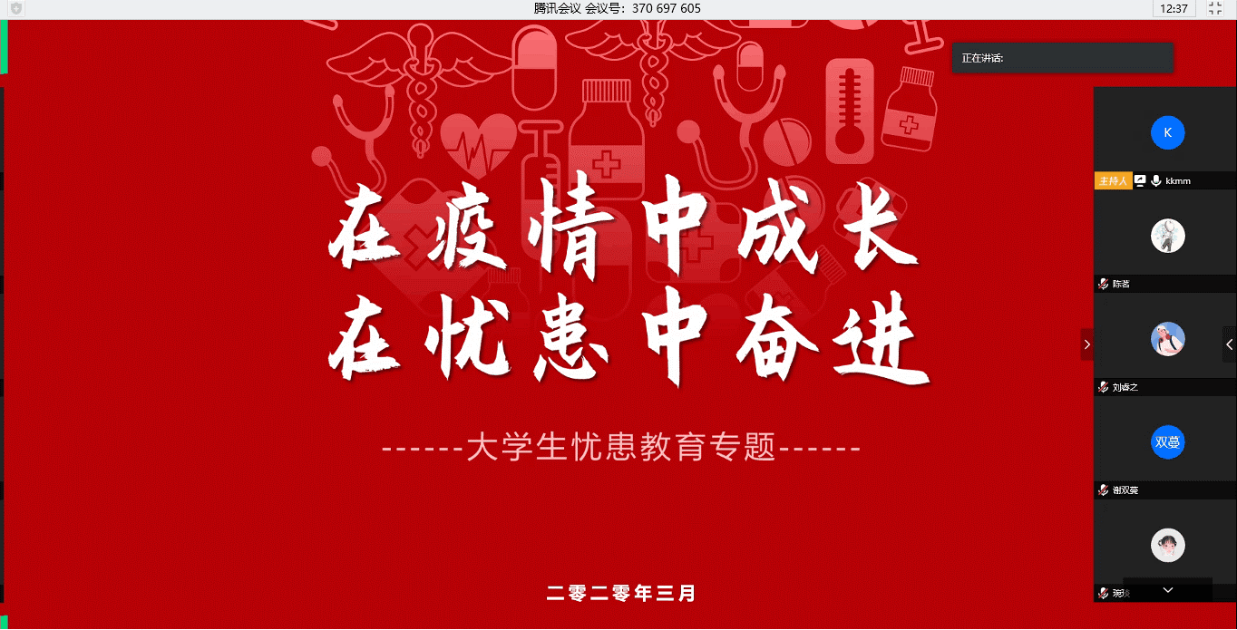 最后,蒋导总结到,当代青年作为疫情的亲历者、见证者、参与者和奋进者,唯有在疫情这场大考中不断增强生命意识、忧患意识,敢于拼搏、勇挑重担,才能在为祖国、为人民、为民族、为人类的奉献中焕发出青春光彩。