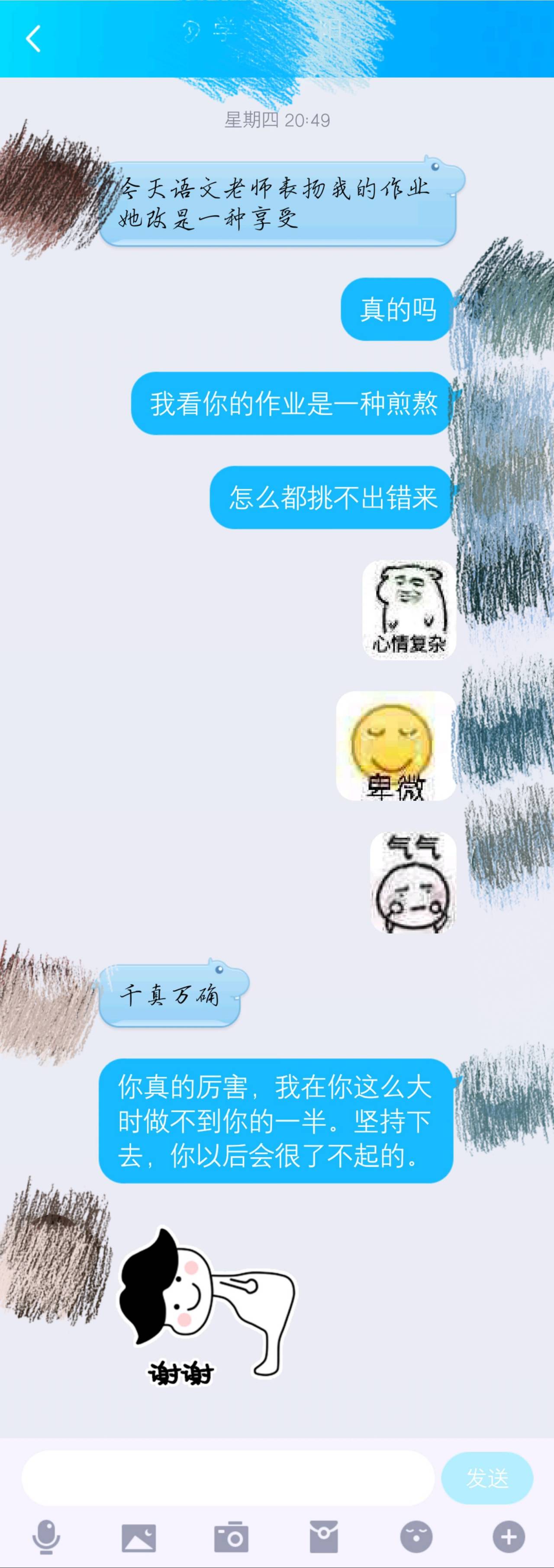志愿者徐凤晨辅导的是一名初一的学生小罗。小罗同学不像其他孩子那样腼腆羞涩,反而很容易亲近,也乐意与志愿者交流,这让志愿者倍感幸运。在坚持了一个多月的辅导之后,两人已经建立起了深厚的友谊。除了语文阅读和数学难题这种常规指导之外,志愿者又开始了英语作业的辅导。因为小罗的作业内容涉及未学习的知识,所以小罗做作业时遇到不少困难。针对这个问题,志愿者用了近3个小时的时间给小罗讲解so、neither的倒装句的结构、用法、习题等等。无论是志愿者发的语音、文字还是手写的内容,小罗同学都学得很认真。志愿者对此感到欣慰,她说:“无论花多久的时间准备这个语法讲解,无论花多长时间让她理解这个内容,只要她说‘小徐姐姐,我懂了’,我就很开心。”