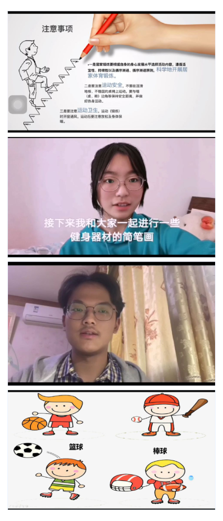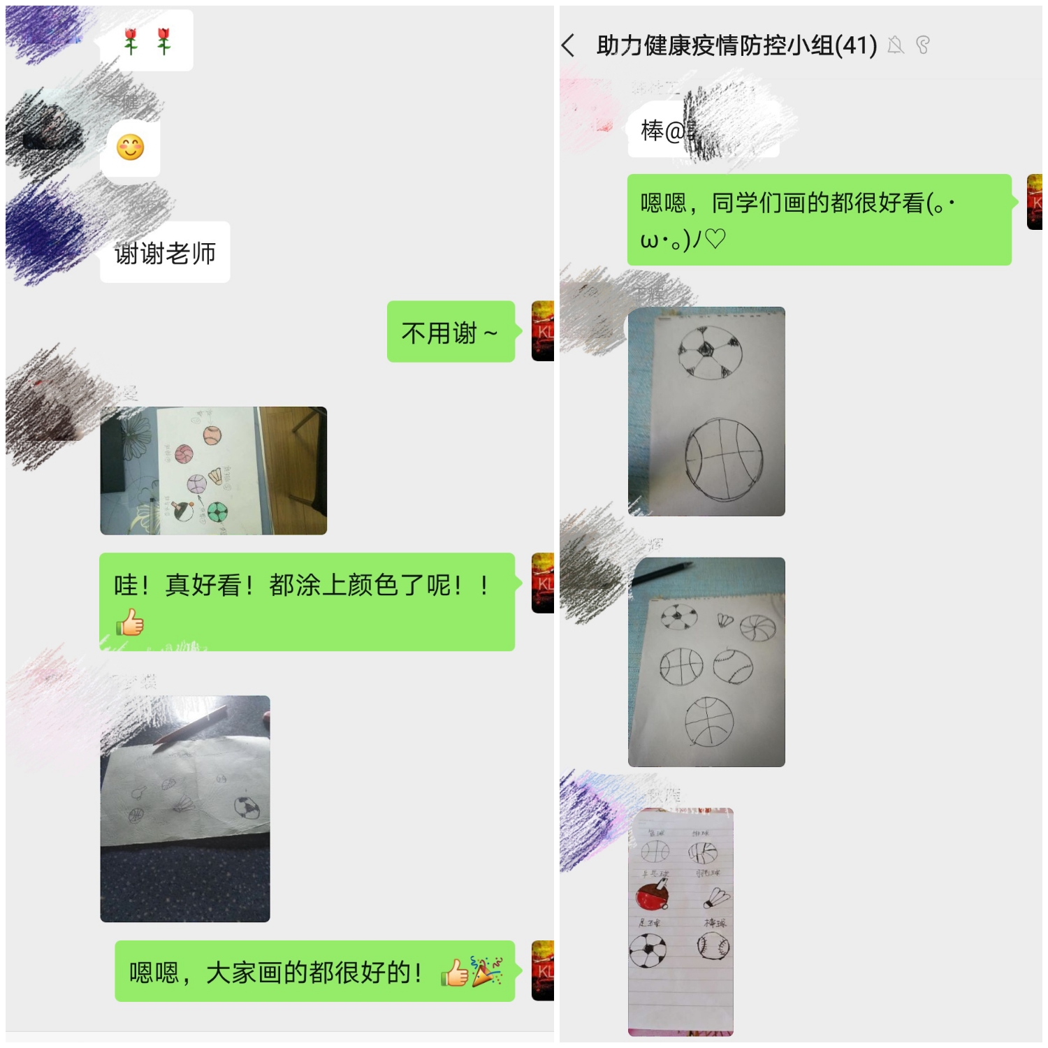 为了缓解大家长时间听课的疲劳、提高趣味性,志愿者刘赛楠带领着学员们一起画起了球类器材的简笔画。绘画开始前,志愿者提醒学员们要准备好像硬币这类圆形的物品,方便画画。绘画时,志愿者一边讲解画图的要点,一边为学员们做示范。视频看完后,徐家棚的学员们纷纷展示出自己的绘画成果,得到了志愿者和社工的赞美与夸奖。
