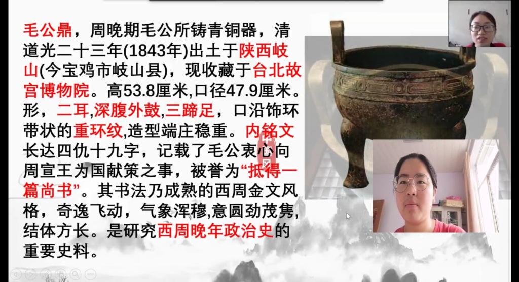 (通讯员 段灵意)5月26日上午,华中师范大学信息管理学院的6名志愿者与中南路阳光家园的14位残疾人朋友在“钉钉”直播间如期相见,共同参与此次志愿服务活动。为响应习近平总书记关于“文化自信”的号召,志愿者们立足中华文化宝库资源,带领残疾人朋友了解文物相关知识、探索文物背后的历史故事。本次所介绍的文物是周晚期青铜器毛公鼎。