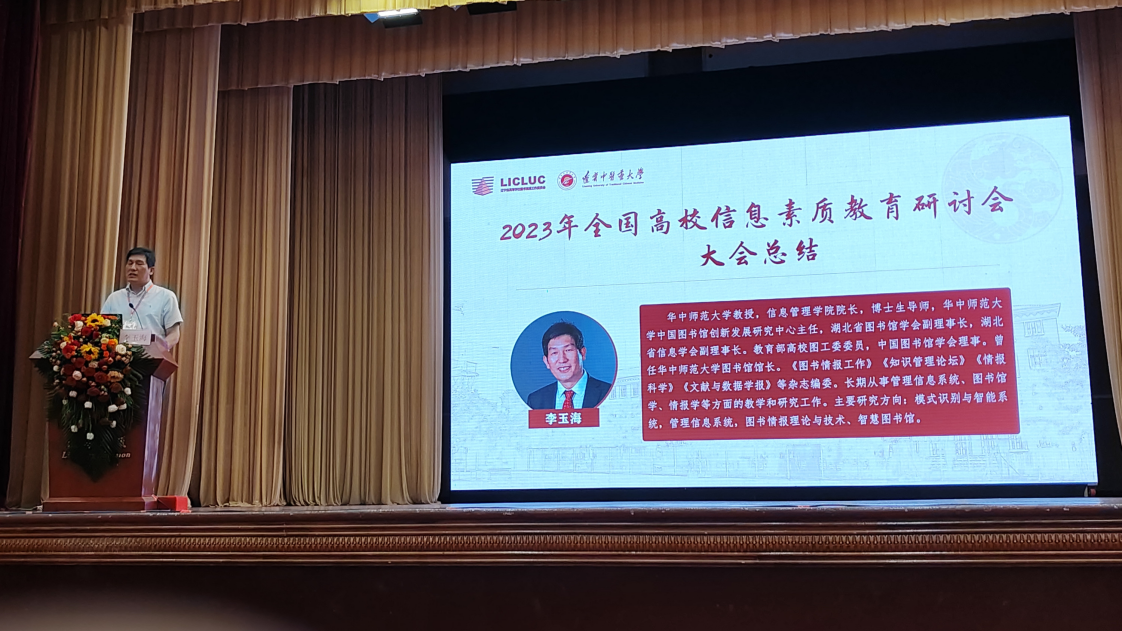 9月22日下午,李玉海院长作为教育部高校高等学校图书情报工作指导委员会委员上台颁奖,并作大会总结。