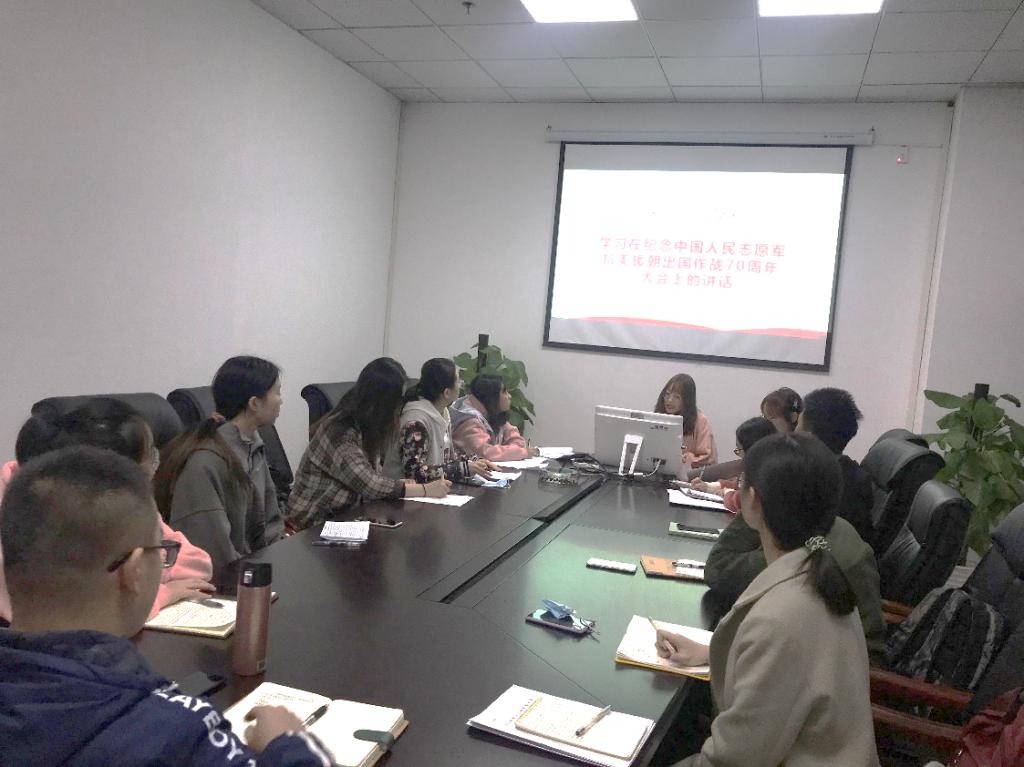 学习内容结束后,本次党日活动也接近尾声,党支部书记卢旺同志总结到:“同志们关于习总书记的讲话感悟都很深刻,抗美援朝战争击碎了侵略者的梦想,现在中美关系极度紧张,我们在这个时候纪念中国人民志愿军抗美援朝出国作战70周年,是在缅怀将热血洒在朝鲜大地上的志愿军将士们,同时也在告诉美国,即使在70年前,一穷二白的我们也能将他们击败,在中国日益强大的今天,更不要妄想我们中国会向美国妥协低头。大家关于文件内容的学习也很到位,大家都是学生党员,对于教育评价方案的改革感受非常切身。希望大家在党日活动上学习相关知识后,在日常生活中也要加强相关知识的学习,不断进步。” 至此,本次党日活动顺利结束。