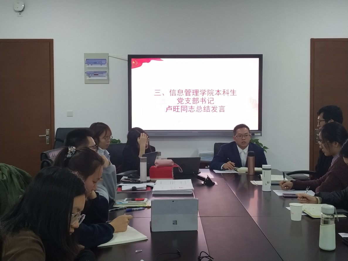 (通讯员 郭致怡 陈茗)2020年11月21日下午,中共华中师范大学信息管理学院本科生党支部11月党日活动在南湖综合楼10003会议室顺利开展。本次活动由党支部组织委员谭长芝同志主持,党支部书记卢旺同志和本科生党支部其他党员同志参加了此次活动。