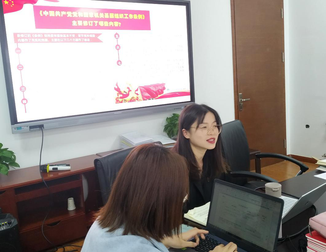 会议伊始,全体党员在谭长芝同志的带领下深入学习了《中国共产党党和国家机关基层组织工作条例》,她提到,新修订的《条例》基本保持原有框架不变,在七个章节有所调整,在内容上做了充实和完善,并带动第一次参与当日活动的同志积极地参与到学习中去。