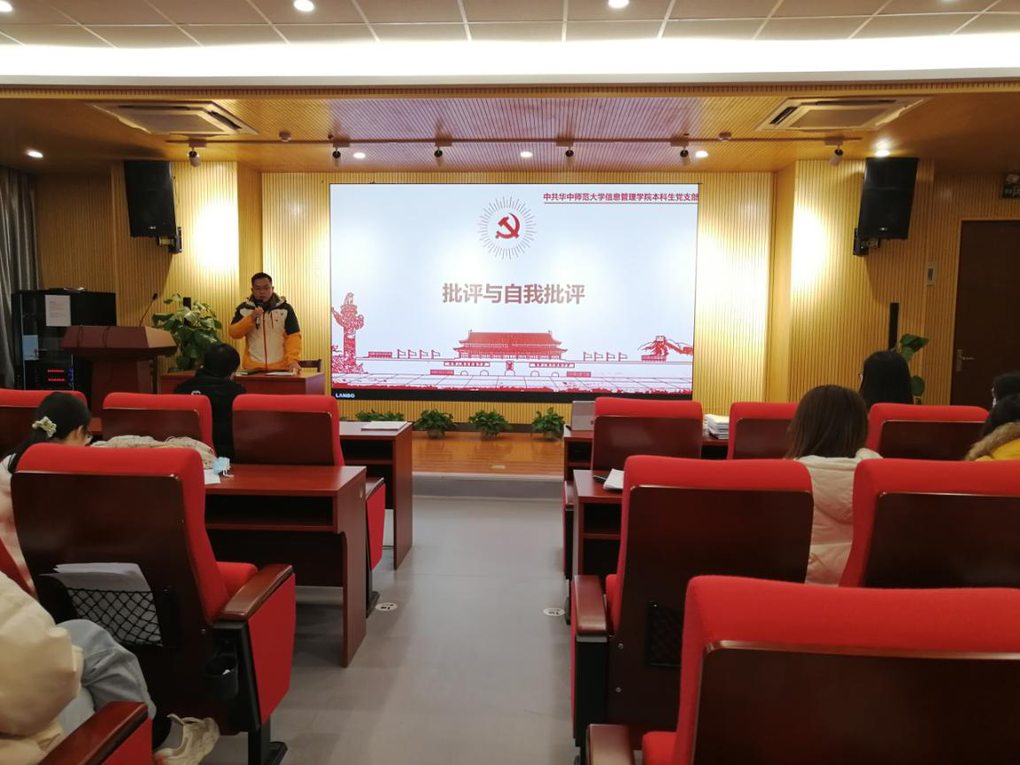 (通讯员 李淼 潘丽妃)2021年1月8日,中共华中师范大学信息管理学院本科生党支部2020年度组织生活会与民主评议党员大会在学院10001会议室成功举行,大会由党支部书记卢旺同志主持,支部全体党员同志参会。