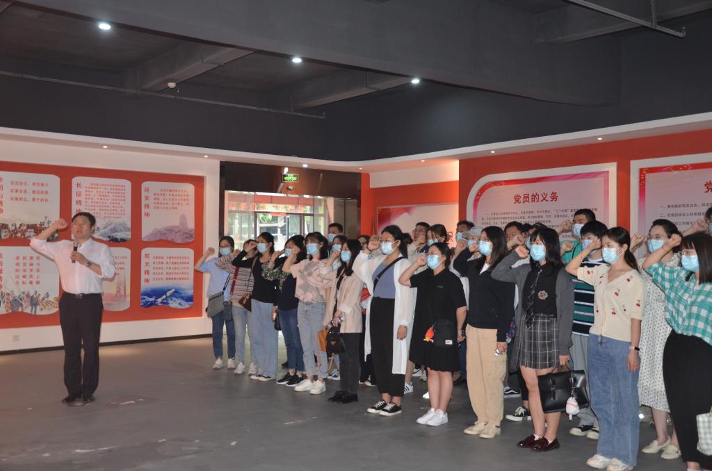 一下车,全体党员在院领导的组织下有序排成三路纵队,一同跟随现场讲解员的步伐前往党建文化馆。大家首先在馆内的党员宣誓厅驻足,由王雨露书记领誓,带领大家重温了入党誓词,四十余名党员铿锵有力的声音在厅内一同喊响,分外嘹亮,展现出我院党员同志们坚定初心和使命的良好精神风貌。