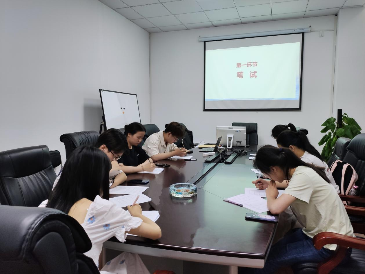 参赛选手来自学院本科生各年级团总支。比赛分为三个环节:现场笔试、听音频猜红歌、看图片猜史实。薛建伟简单介绍比赛规则后,比赛正式开始。在第一环节中,各参赛选手沉着冷静,认真作答,在规定时间内完成笔试作答。