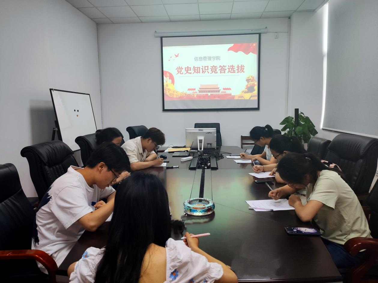 (通讯员 肖丽霞 薛建伟)5月30日下午,由共青团华中师范大学信息管理学院委员会主办,信息管理学院团委组织部承办的“学党史 悟初心 担使命”党史知识竞赛院内选拔赛于南湖综合楼10063会议室顺利举行。本次比赛由学院团委学生副书记薛建伟主持。