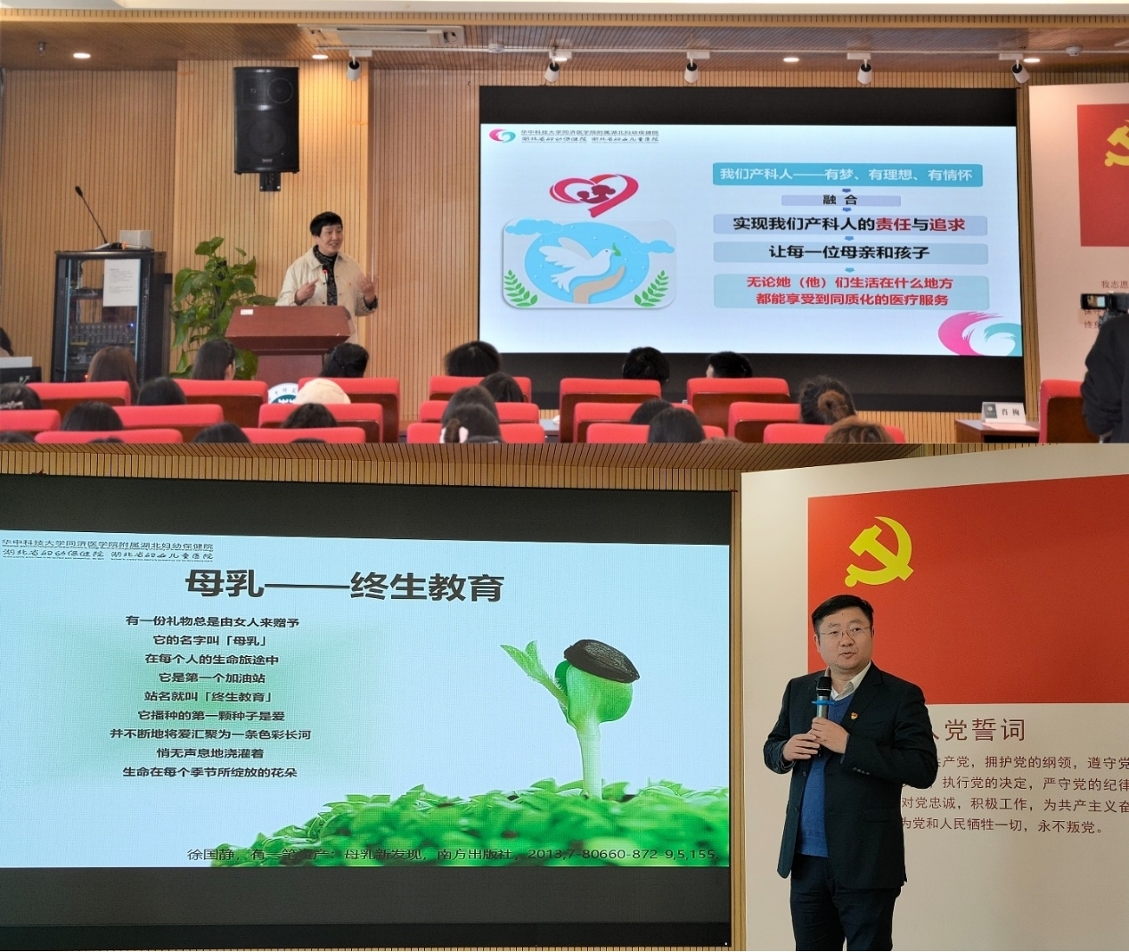 (通讯员 邓佳敏)为进一步践行“学党史、悟思想、办实事、开新局”精神,深化党史学习教育成效,推进“我为群众办实事”实践活动走深走实,提高教职工优生优育服务水平,落实国家生育政策及配套支持措施,华中师范大学信息管理学院信息资源管理系教工党支部与湖北省妇幼保健院产科第一、第二党支部之间搭建了合作和联谊的桥梁。2021年11月26日下午2:30,信息管理学院于南湖综合楼10001报告厅举办“党建领航 医校联谊”——健康宣讲进高校活动,该活动受到广泛关注,并得到了湖北电视台的报道。本次活动由信息管理学院党委副书记王涛主持,与会人员包括湖北省妇幼保健院产科首席专家肖梅(二级主任医师)、省妇幼保健院党委办公室主任柯建、产科第二党支部书记杜树国及其他10余名医护人员、华中师范大学医院王珺副院长、信息管理学院分党委领导班子、学院全体教职工、其他兄弟单位的适龄女性教职工以及全体研究生。
