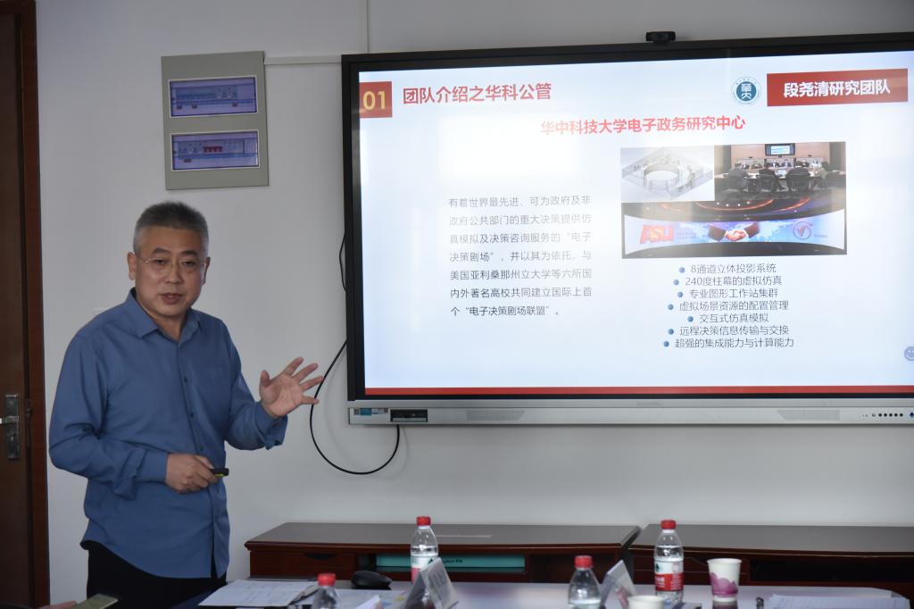随后,教师代表段尧清教授介绍其团队承担的相关重点研究项目以及进展情况。并梳理了项目团队的成功经验:要在聚焦特色亮点,注重实效上下功夫;在上按需求,下接应用上下功夫;在总体规划,分步实施上下功夫;在引起重视,获得支持上下功夫。