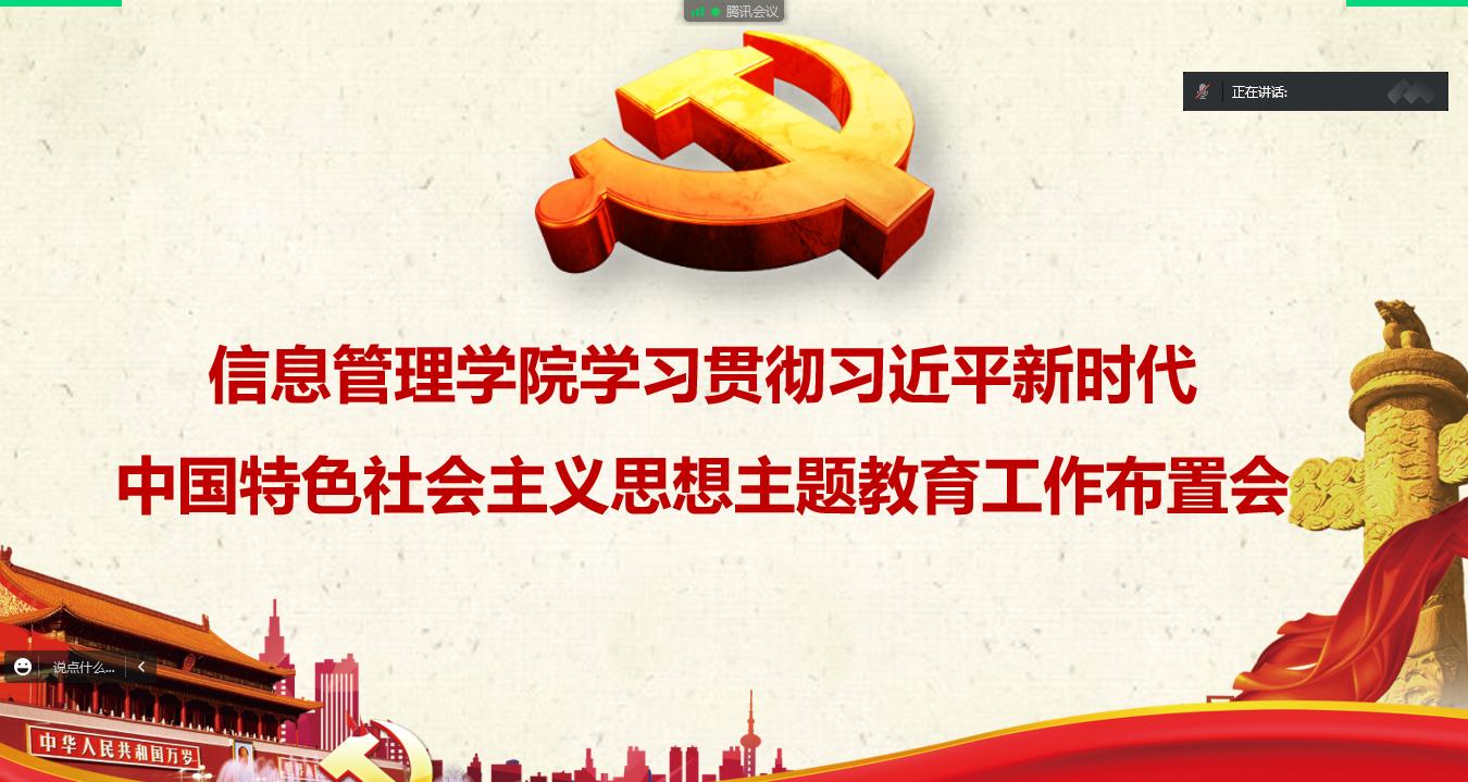 (通讯员 毕慧婷)为深入推进学习贯彻习近平新时代中国特色社会主义思想主题教育,切实落实好主题教育的总要求和根本任务, 5月5日下午,我院召开学习贯彻习近平新时代中国特色社会主义思想主题教育工作部署会。会议传达了学校有关工作会议精神,研究了学院开展主题教育的工作方案,并对下一步工作作出部署。学院全体党委委员、各党支部书记及支委通过线上线下结合的形式参加本次工作部署会。会议由信息管理学院党委副书记王涛主持。