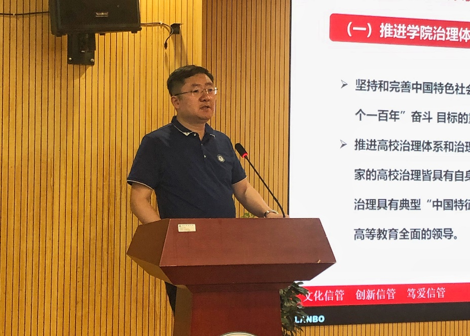 王雨露立足学院发展、学科建设,围绕“完善学院治理体系,对标学科评估体系,全力冲刺一流学科建设”做专题党课。他指出:第一,推进学院治理体系和治理能力现代化具有重要意义,是推进高校治理体系和治理能力现代化,是贯彻党对高校全面领导的重要内容;第二,学科评估在促进高层次创新人才培养、促进高校学科建设、满足社会发展需求、助推高等教育内涵发展、实现高等教育治理现代化等方面至关重要;第三,学院在学科评估上有一定优势,也存在一些短板,要扎实做好顶层规划,建设高素质教师队伍,坚持体制机制改革创新,在学科评估上争创一流。