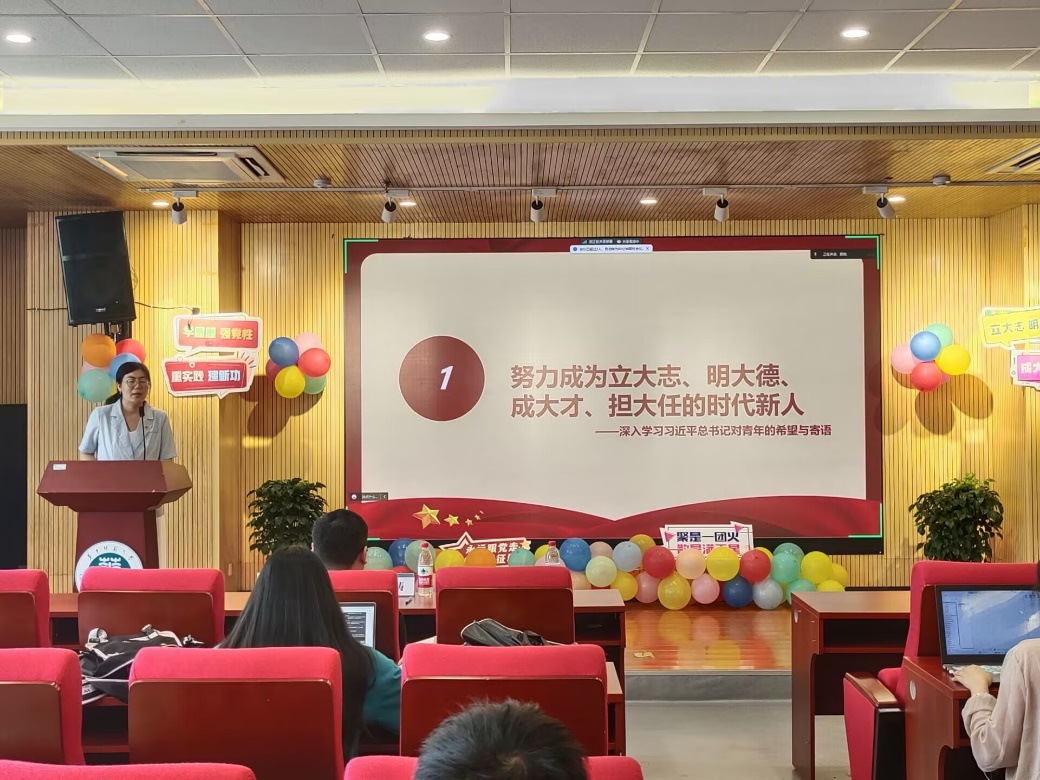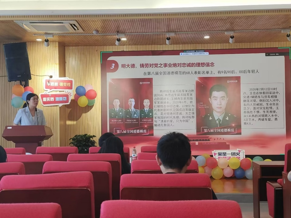蒋可鸣同志带领大家学习了习近平总书记的相关讲话,领悟讲话精神,树立远大理想,她强调远大志向是人生航向的“指明灯”,是建功立业的“方向标”,是砥砺前行的强大精神动力。她还通过革命先驱所言所行鼓励大家要敢立大志,让青春在创新创造中闪光。