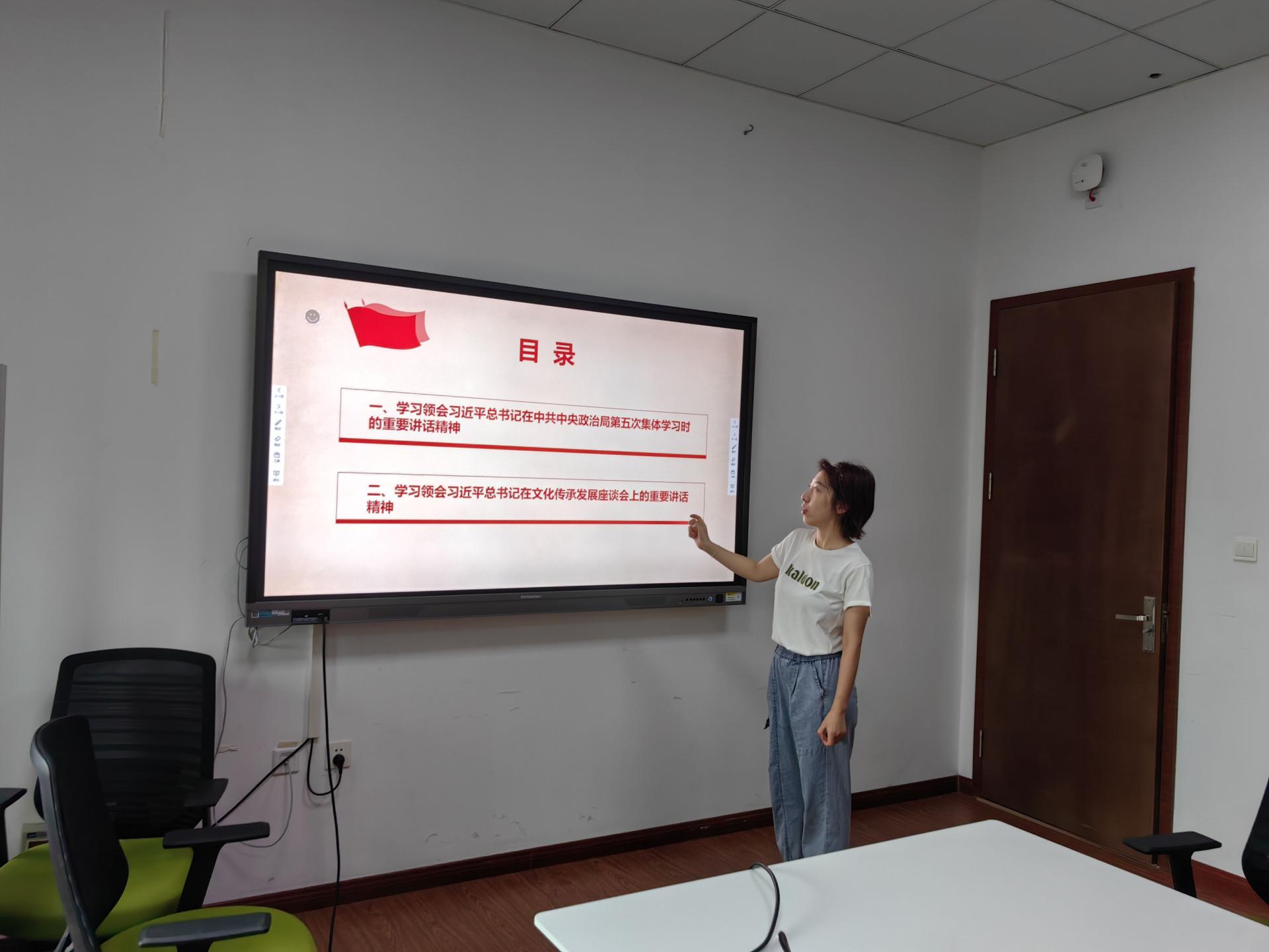 全体党员同志学习领会习近平总书记在文化传承发展座谈会上的重要讲话精神,认识到习近平总书记指出的“在新的起点上继续推动文化繁荣、建设文化强国、建设中华民族现代文明,是我们在新时代新的文化使命。”全体党员同志跟随习近平总书记的步伐,一起了解了中国国家版本馆和中国历史研究院。