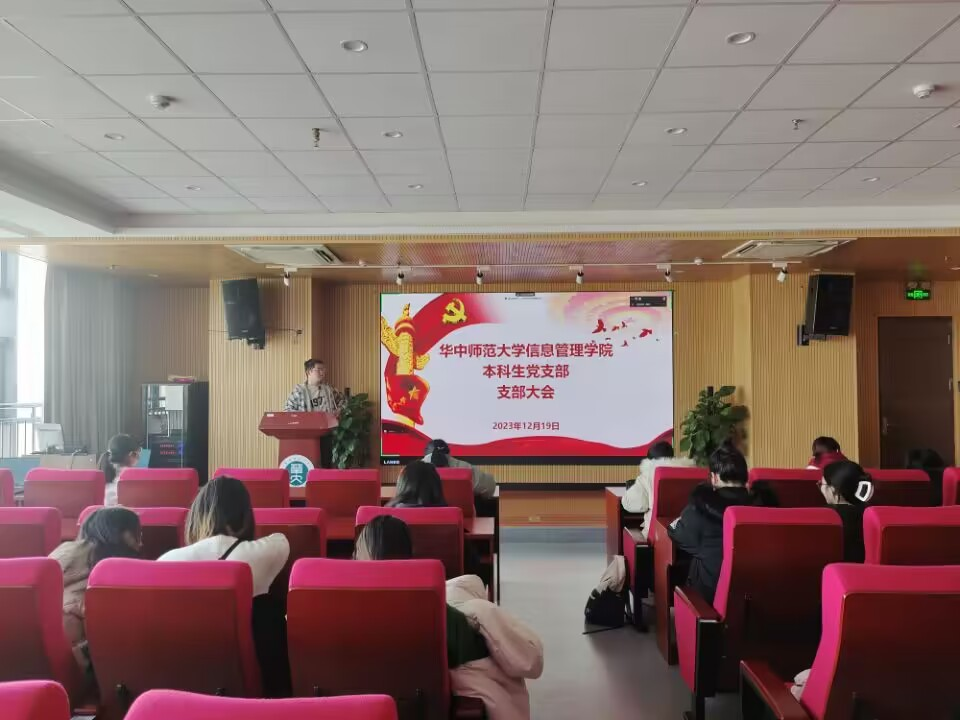 (通讯员 宋德凤 李佳琪)2023年12月19日,华中师范大学信息管理学院本科生党支部接收预备党员暨预备党员转正大会于南湖综合楼10001报告厅顺利召开。会议由党支部副书记刘坤华同志主持。